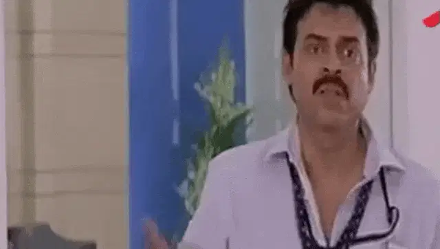 Venkatesh Daggubati smiles and talks, with the text 'Never Before' displayed, likely from an interview.
