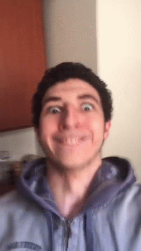 Jo Gigi, also known as Giovanni, makes a funny and exaggerated face while wearing a blue hoodie.