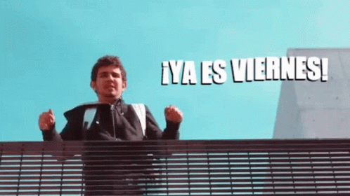 A man, jodlpc, celebrates the end of the week with an energetic dance, exclaiming 'It's Friday!'