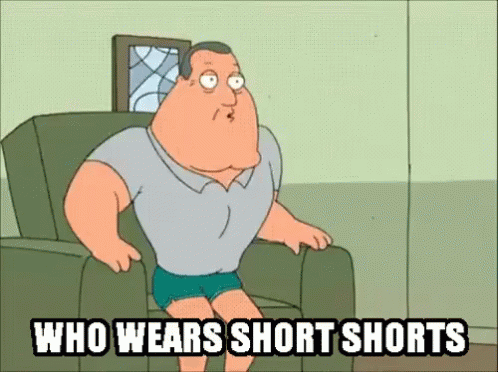 Joe Swanson from Family Guy enthusiastically declares he wears short shorts.