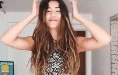 Luisa Moraleida stretching and smiling, showing off her beautiful natural hair after waking up.