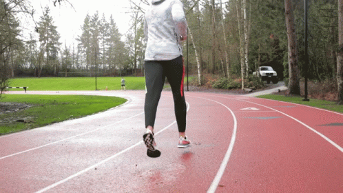 Mikhail Varshavski, also known as Doctor Mike, jogging on a wet red track outdoors.