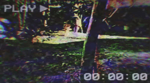 John Underground is seen cutting grass in an outdoor area, captured with a vintage VHS aesthetic.