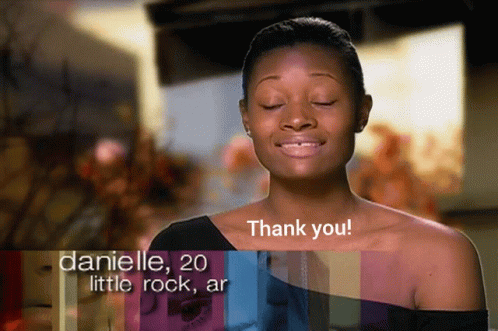 Dani Evans, 20, from Little Rock, AR, expresses gratitude by saying 'Thank you!'