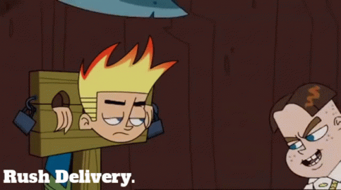 Johnny Test trapped in a stockade while Bling Bling Boy prepares a 'Rush Delivery' package.