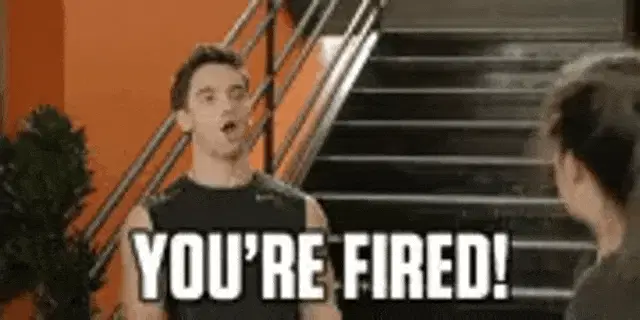 a cartoon character says " i 'm fired right " next to another character