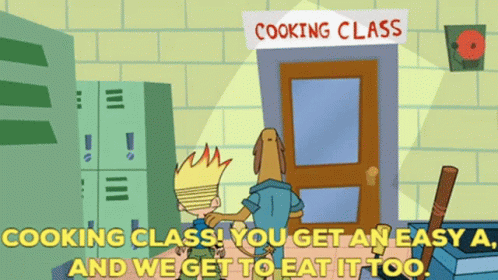 Johnny Test and Dukey are thrilled about cooking class, anticipating an easy A and delicious food.