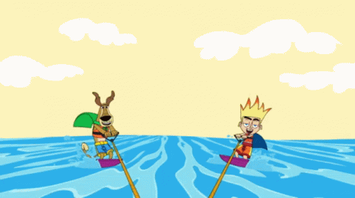 Johnny Test and Dukey the dog enjoy an exciting water skiing adventure on a sunny day.