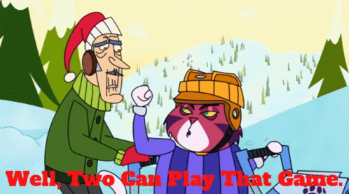 Johnny Test and Mr. Mittens in a snowy scene, with the caption 'Well, Two Can Play That Game' displayed.