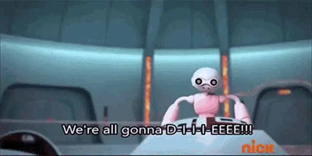a cartoon of a boy and two girls with the words yeah we 're doomed