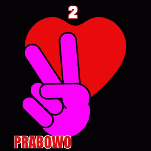 Prabowo campaign graphic featuring a pink peace sign, red heart, and the number 2, symbolizing support.