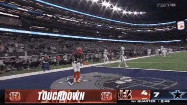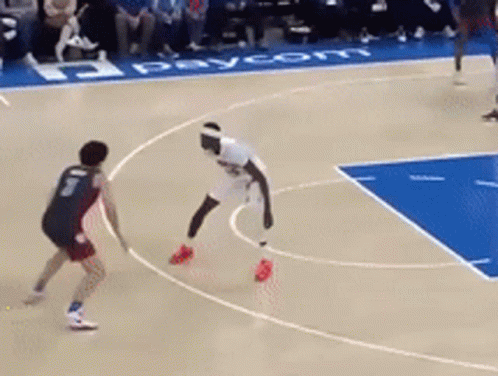 Josh Giddey shows off his signature Griddy move during a basketball game on the court.