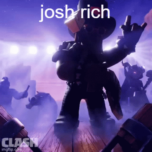 Josh Rich, a Clash of Clans barbarian character, rocks out on an electric guitar on stage.