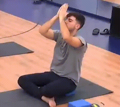 Juanjo Ot meditating and practicing yoga on a mat, finding peace and relaxation.