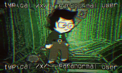 Jude Harley, a cartoon character, appears in a glitchy, pixelated scene with 'typical /x/ - paranormal user' text.
