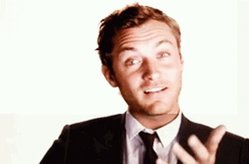 Jude Law in a suit and tie, making funny and expressive faces during his Foksrun segment.