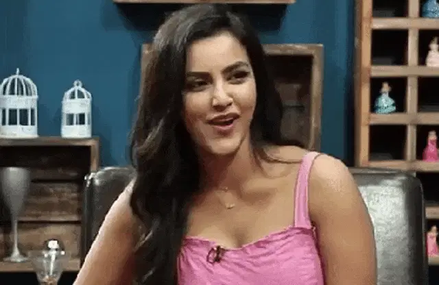 Judith Rakers, a blonde woman in a blue shirt, reacts and listens attentively on the 'Wie Bitte' talk show.