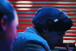 Cole Sprouse as Jughead from Riverdale, wearing his signature beanie and jacket, looking over his shoulder and flirting.