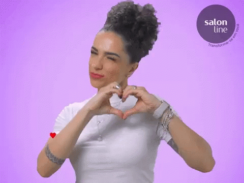 Juju Franceschi making a heart shape with her hands, showcasing her curly hair and the Salon Line logo.