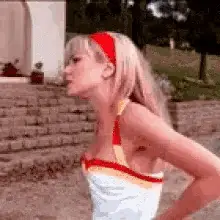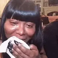 Jujupix Jujufofao in a pink hat and striped dress, revealing a heavily filtered and distorted face.