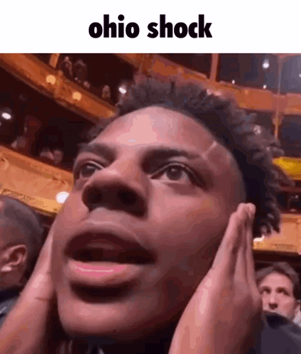Man's shocked reaction with 'ohio shock' text, a meme from Jujutsushenanigans.