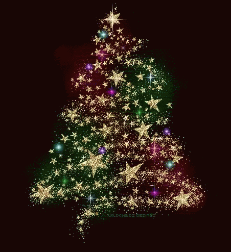 A festive image featuring a Christmas tree creatively formed from sparkling stars, embodying the spirit of Jul.