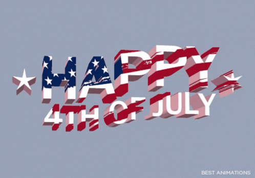 Animated 3D text wishing 'Happy 4th of July', featuring American flag patterns and celebratory stars.
