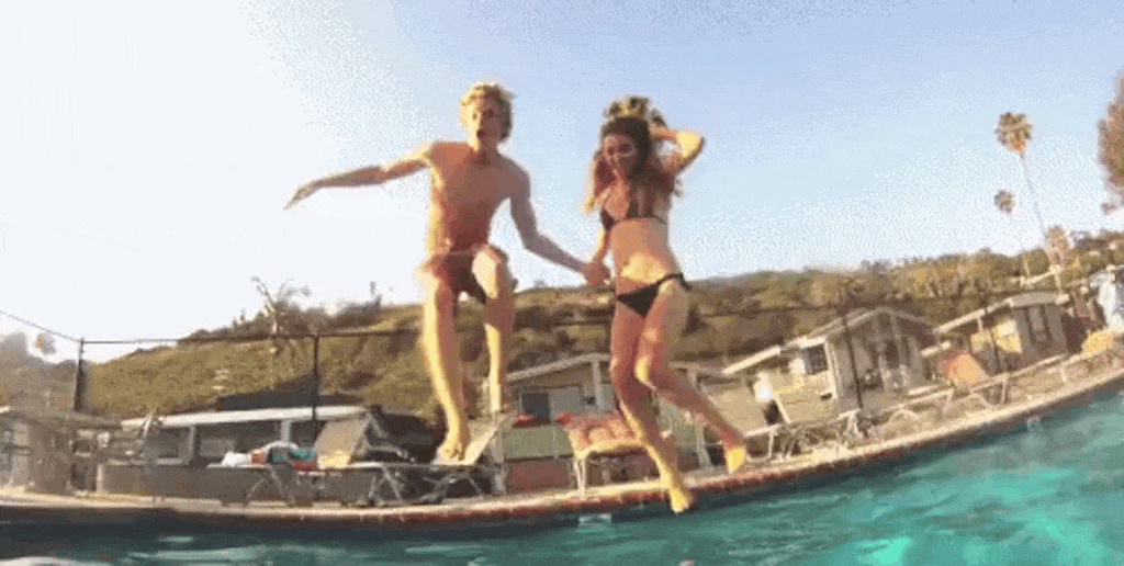 Couple Jump in Pool