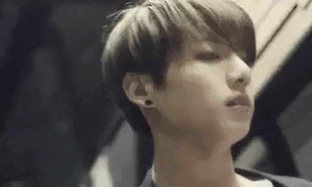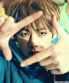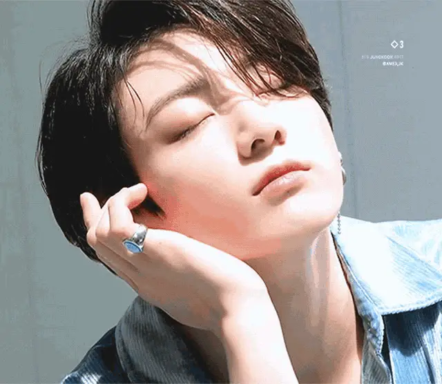 Jungkook from BTS frames his face with his hands, looking intensely at the camera.