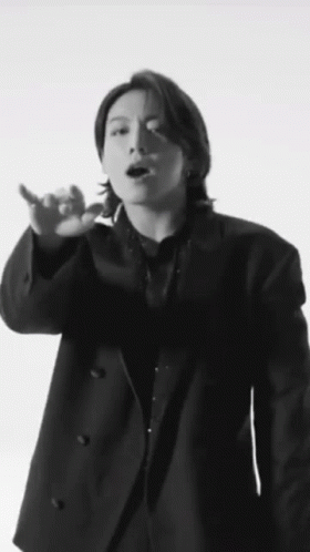 Jungkook from BTS in a striking black and white close-up, featuring his iconic eyebrow piercings.