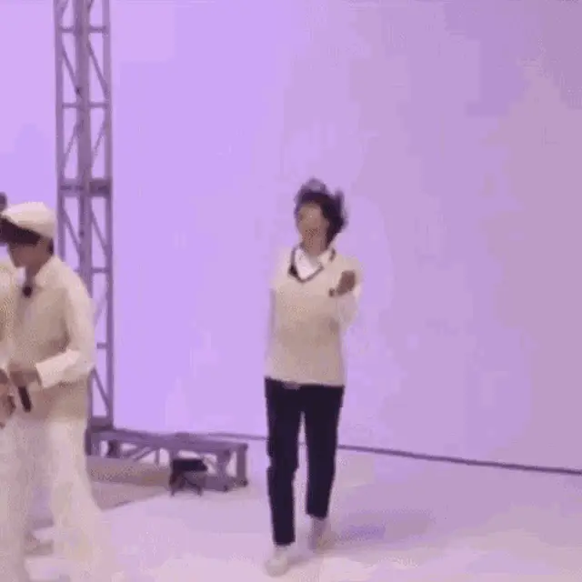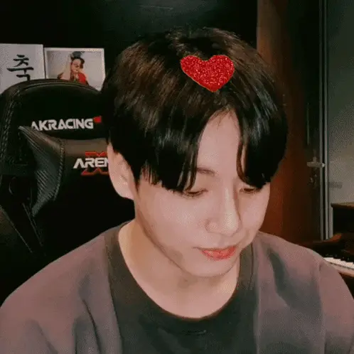 Jungkook with vibrant purple hair makes a cute pout, holding a small golden trophy.