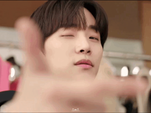 Junho (이준호) looks directly at the camera with a charming gaze, his hand slightly blurred in the foreground.