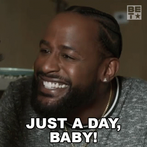 Kareem Johnson laughing heartily and exclaiming 'Just A Day, Baby!' from BET's Games People Play.