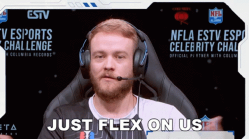 Trevor Mcneal, wearing headphones, reacts with the phrase 'Just Flex On Us' during an ESTV Esports Challenge.