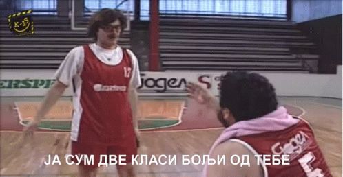 Mile and another player in a K15 sketch on a basketball court, with one claiming superiority.