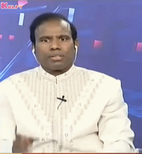 Ka Paul, wearing a white shirt and earbuds, emphatically says 'Kaadu No' on television during a political segment.