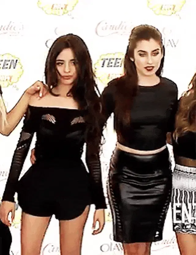 Camila Cabello wears a banana costume with 'Banana ooh na na' written on it, sitting at a table and smiling.