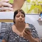 Kabeyo Tullaluana looks at her cell phone while sitting on a bed.