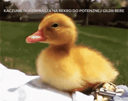 Kaczunietka invites to recruitment for the powerful Rebe guild, featuring a cute yellow duckling.