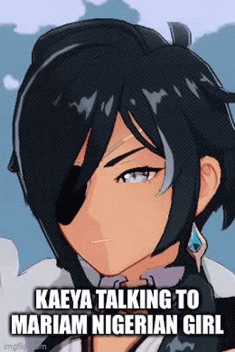 Kaeya from Genshin Impact is shown talking to Mariam, a Nigerian girl, in a video game scene.