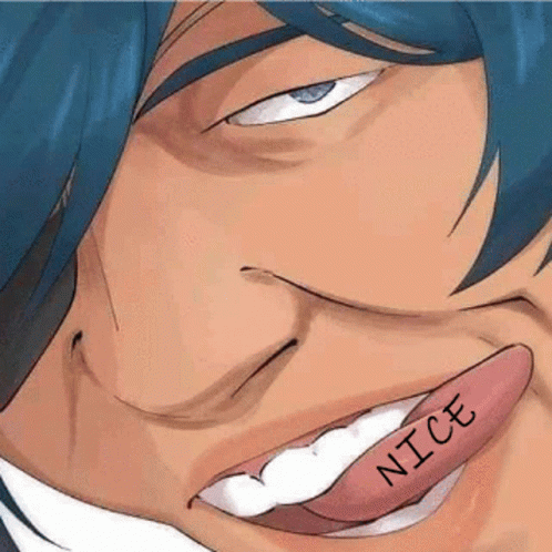 Kaeya, an anime character, shows a sly expression with his tongue sticking out, featuring the word 'NICE'.