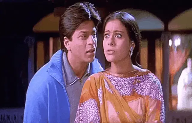 Kajol performs a traditional arti, holding a tray of offerings in a historical setting.