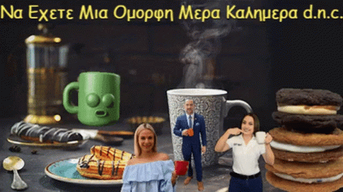 Costasdarviras Dnc wishes you a Good Morning with coffee, cookies, and friends.