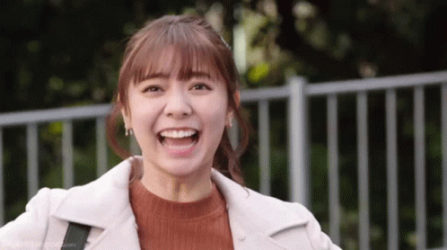 Mei Sudo (Asuka Kawazu) from Kamen Rider Saber laughs and makes a cute finger heart gesture.