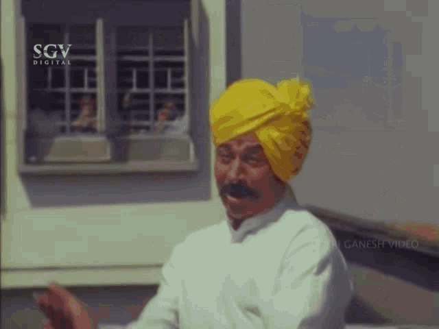 Kannada actor Rajkumar, wearing a yellow turban and white shirt, participates in a vibrant cultural parade.