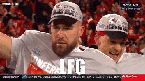 Travis Kelce and Patrick Mahomes of the Kansas City Chiefs celebrate their AFC Championship win.