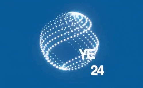 Kanye West's 'YE 24' presidential campaign logo, featuring a glowing sphere on a blue background.