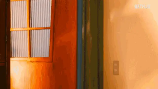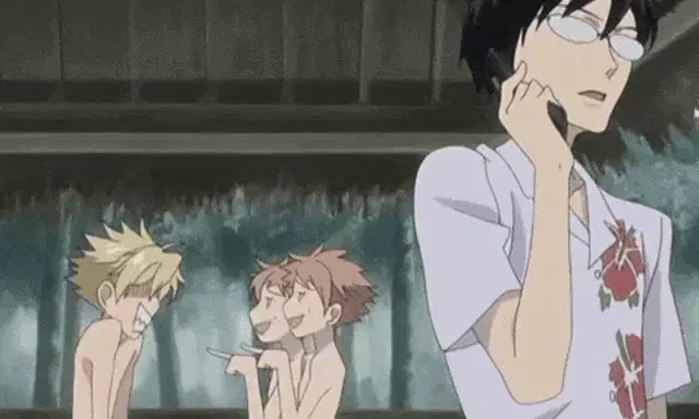 Kaoru from Enstarslokal holding a microphone with the Indonesian text 'rumah sakit jiwa di sebelah sana' (mental hospital over there).