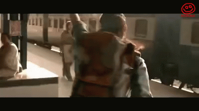 Kareena Kapoor frantically runs to catch a departing train at a busy station.
