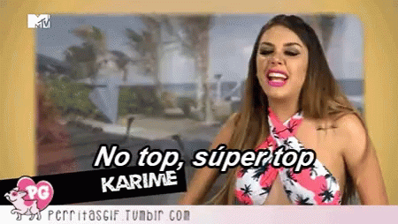 Karime Pindter from Acapulco Shore declares "No top, súper top" while wearing a stylish bikini top.